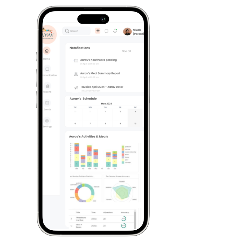WOW! offers parents a user-friendly interface to access real-time updates, communicate with teachers, and engage with the child's learning journey. Receive notifications about activities, meals, and nap times, ensuring peace of mind for the parents while they are away.